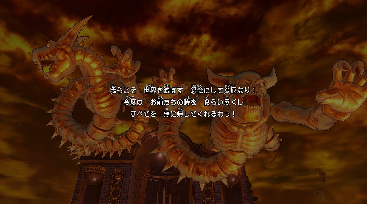 そこに行ってみると、魔王ウルノーガの最終形態のようなものが待ち構えていました。