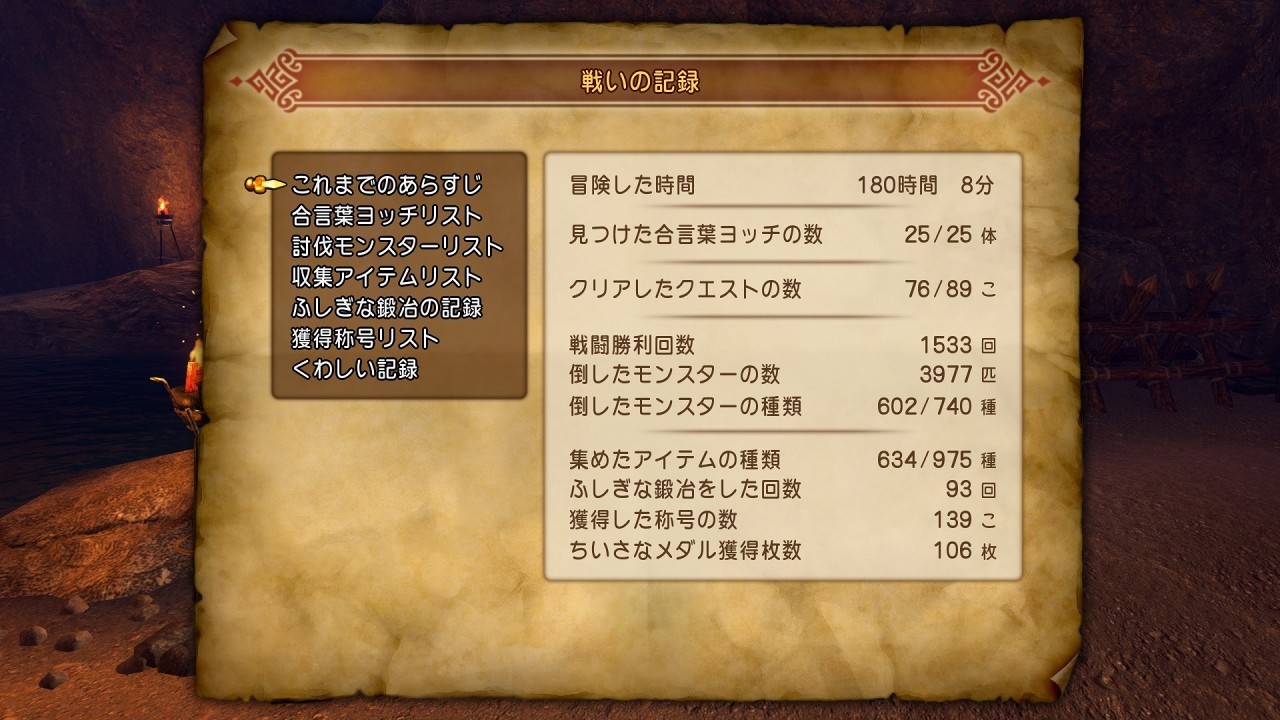 まず、プレイ時間は180時間8分になりました。