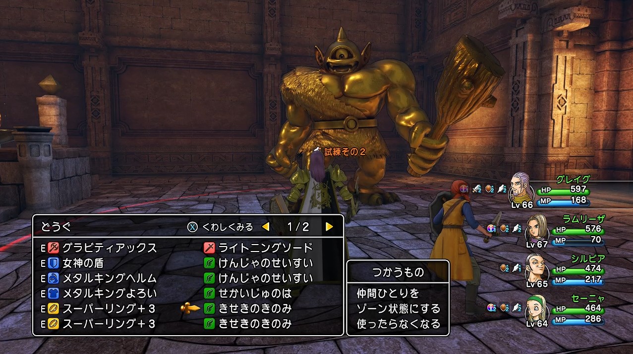 グレイグに6つぐらい持たせていて、もし倒せなくても連発できるようにしていました。
