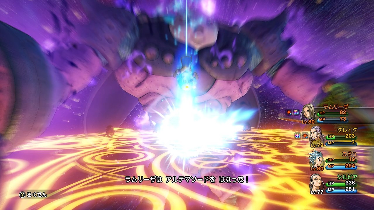 勇者はひたすらアルテマソードや全体攻撃、グレイグとセーニャとロウは、回復とバフに専念という形で戦闘が進みました。