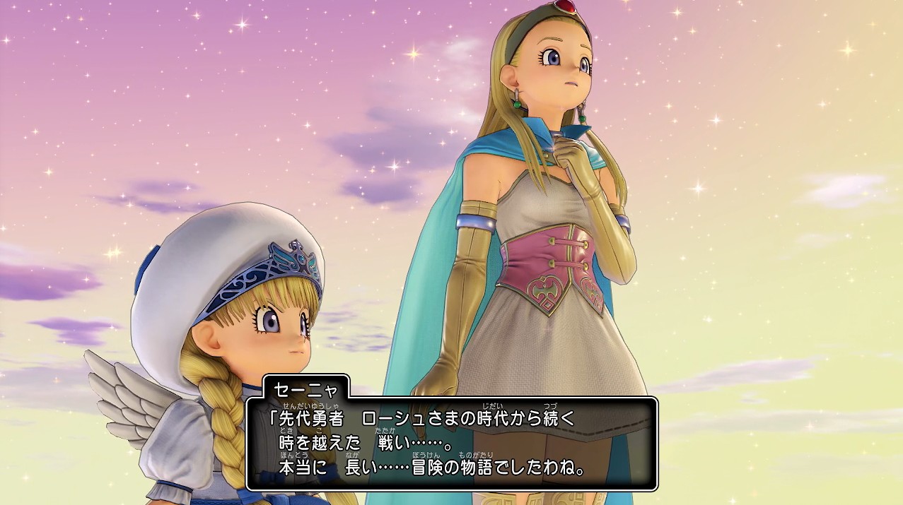 あとはスタッフロールの後に、セニカがローシュと再会する場面があったのと、ドラクエ3の冒頭が入りました。
