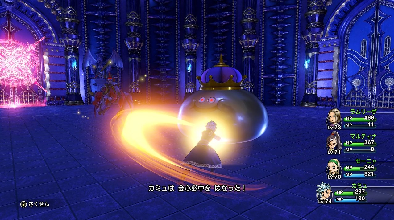 そこの攻略中に思ったのですが、カミュの会心必中があれば、メタルキングも一発で終わります。