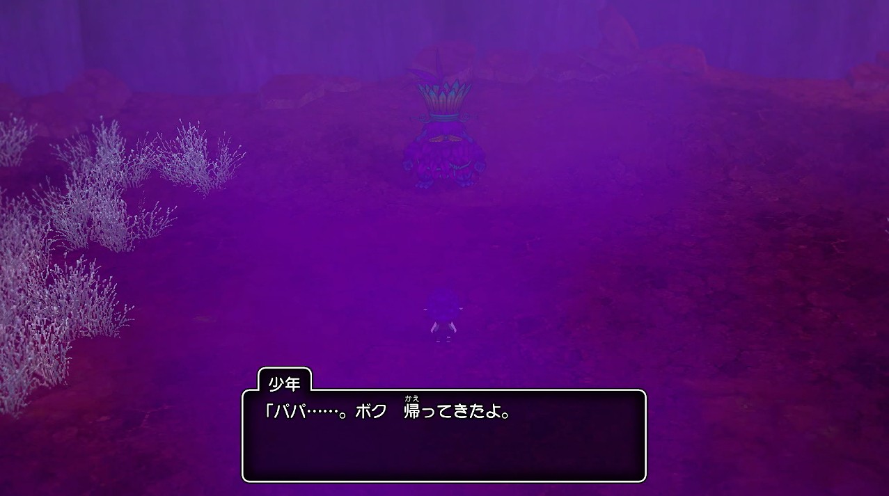 暗黒大樹に向かったところ、少年は世界樹の丘で試練を受けた若葉の精霊の色違いみたいな者をパパと呼びました。