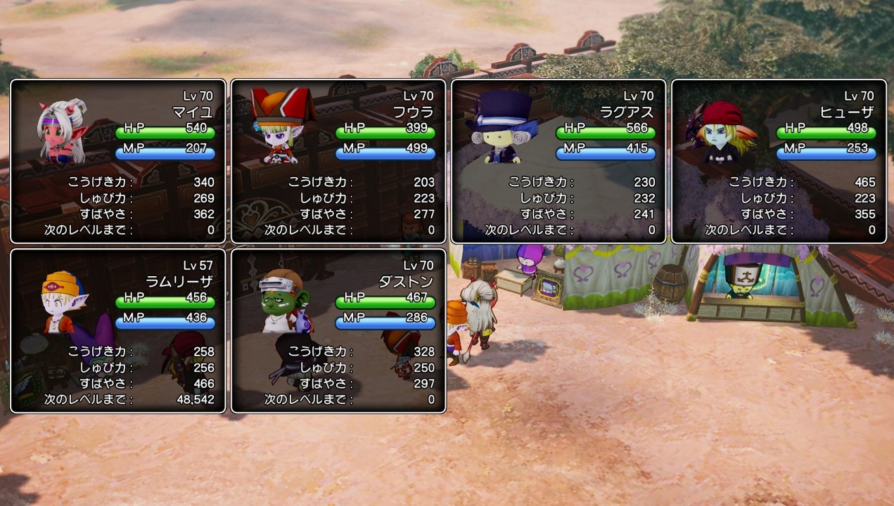 その結果、主人公以外はレベル70でカンストしてしまいましたが、主人公はレベル57と、大きく差がついてしまいました。