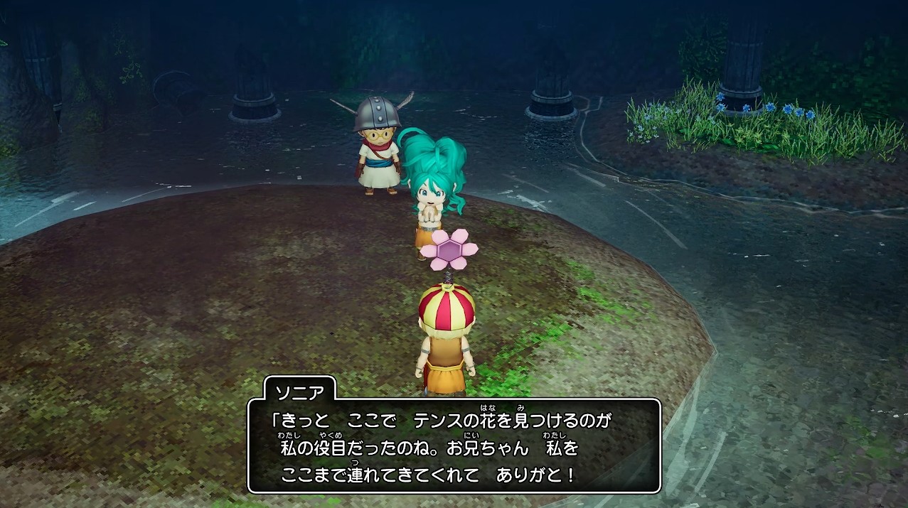 今回は、ソニア、シンイとともに、清き水の洞くつに咲くテンスの花を採りに行きます。