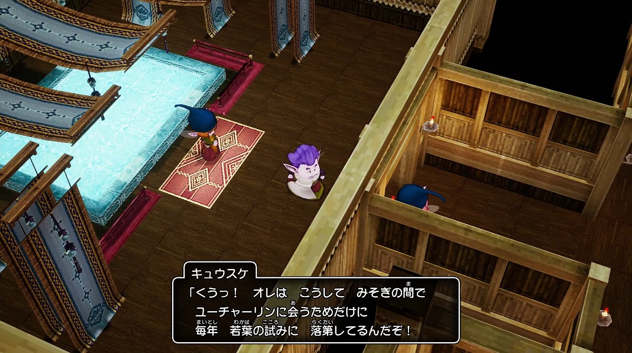 続いてキュウスケが愛してやまないユーチャーリンから、世界樹の朝つゆにて身のけがれを払うことになりました。
