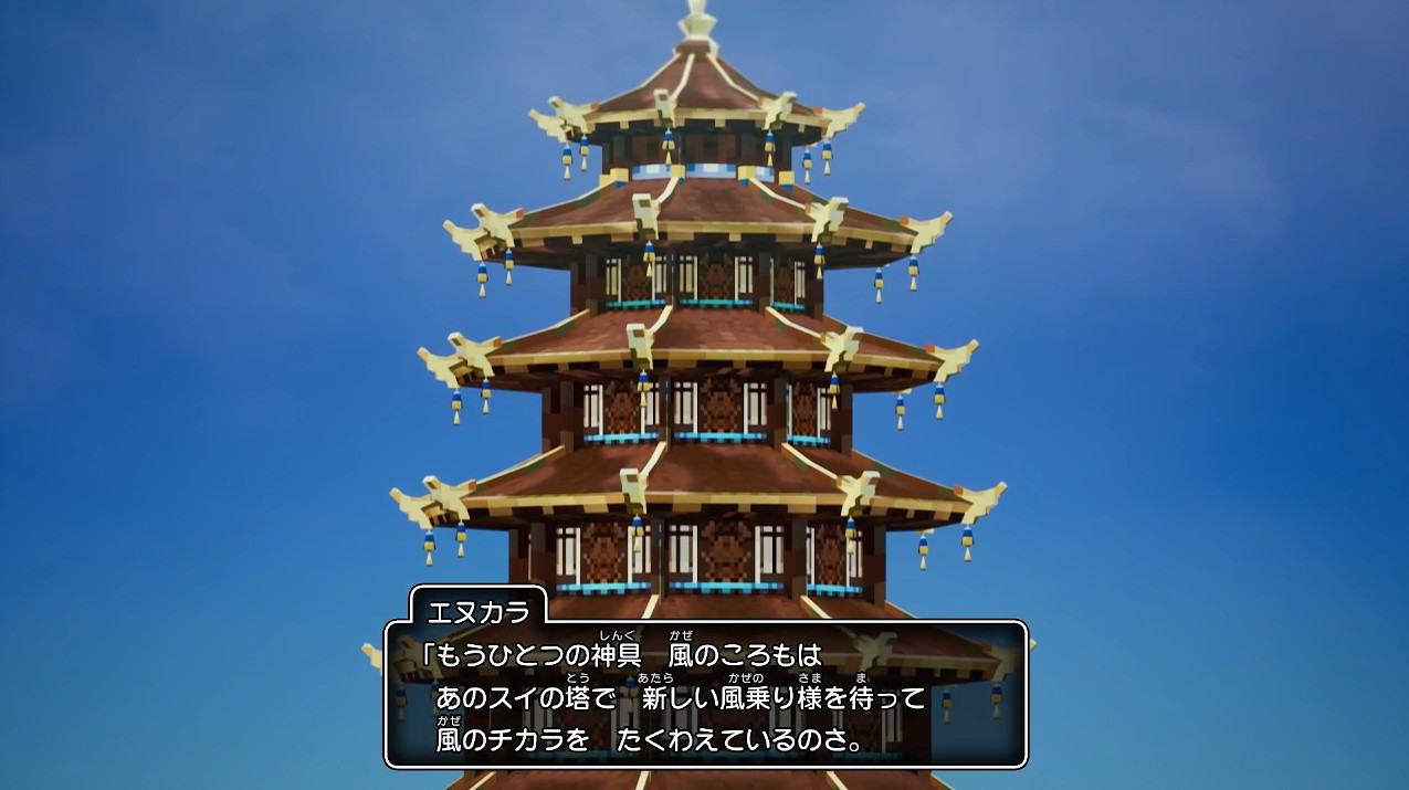 たづなを用意してくれたエヌカラの話では、風のころもはスイの塔で風の力を蓄えているそうです。