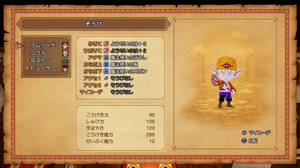 魔法使い装備で固めると、こうげき魔力が285まで上がりました。