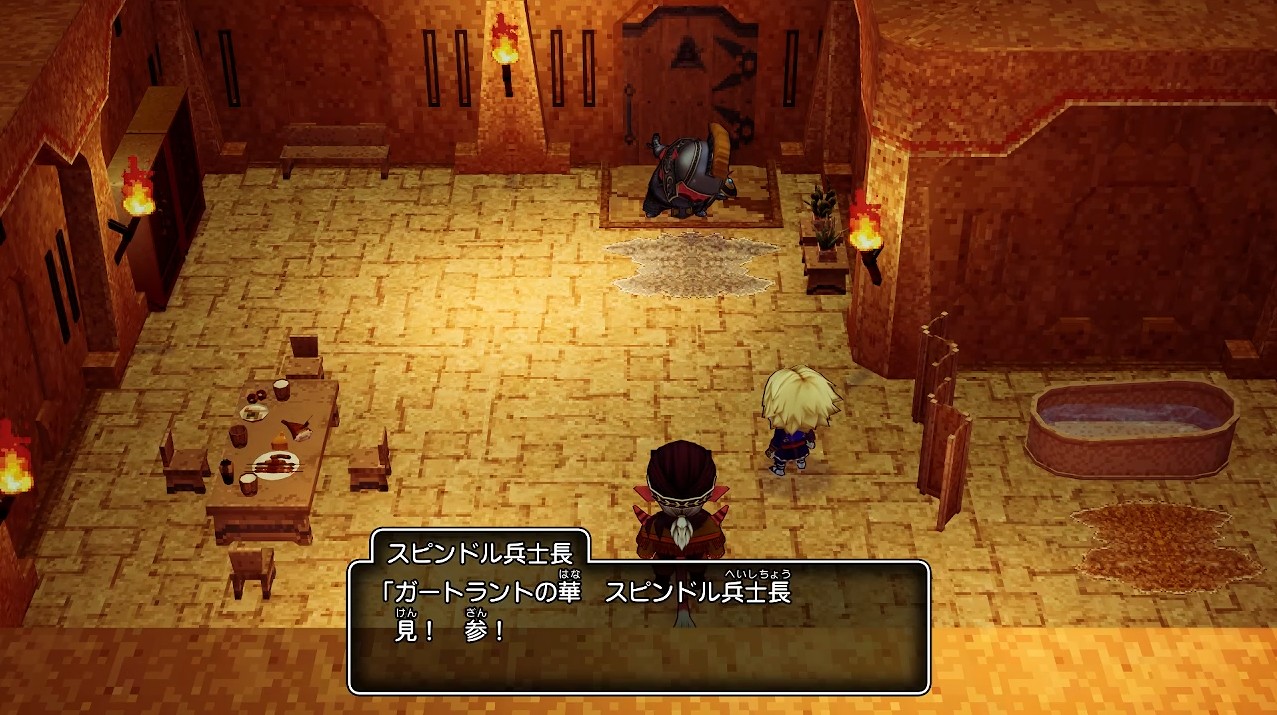 ガートランドの城下町に戻って、作りかけのぬいぐるみをスピンドル兵士長に渡しました。