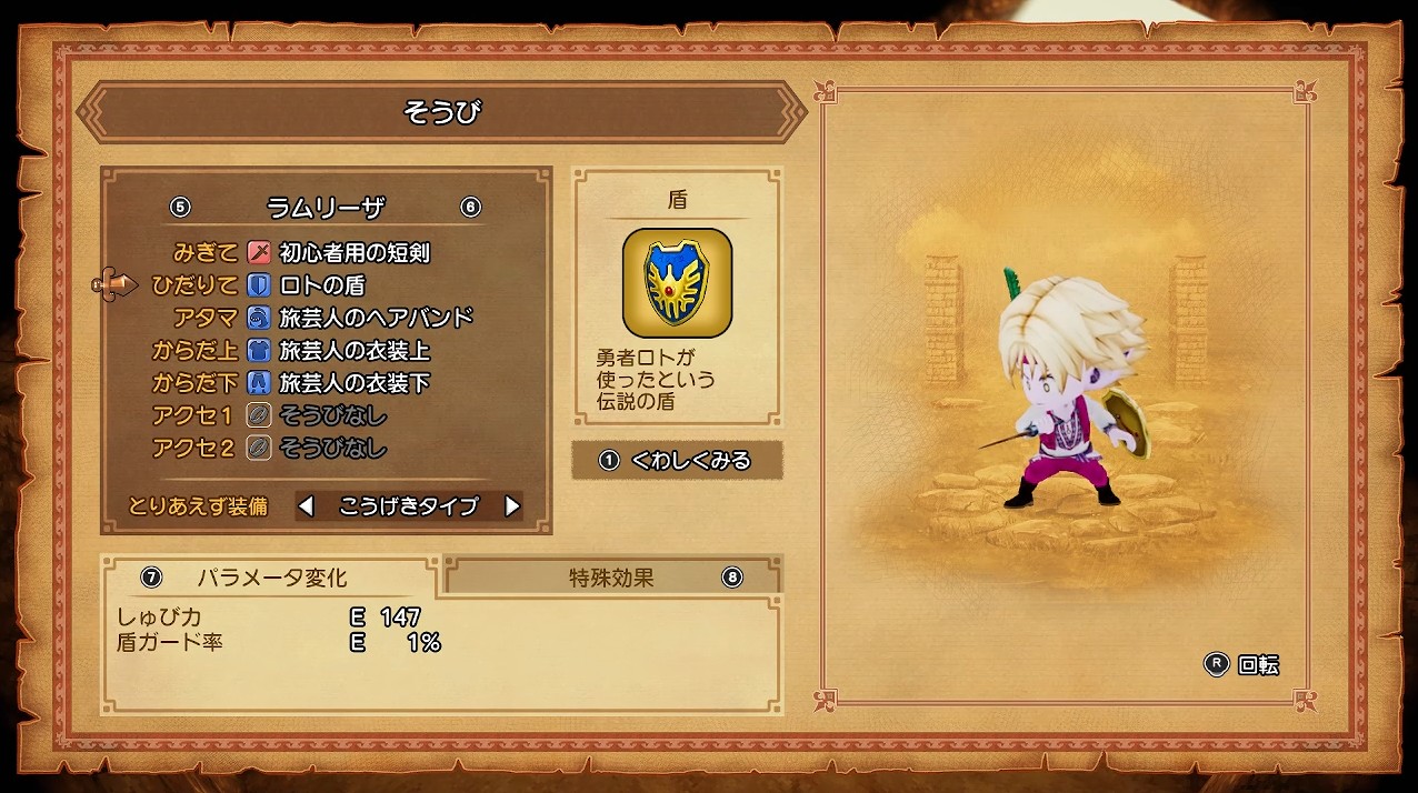 旅芸人の装備が手に入るまで適当な防具だし、そもそもレベルが20近く差があるし……