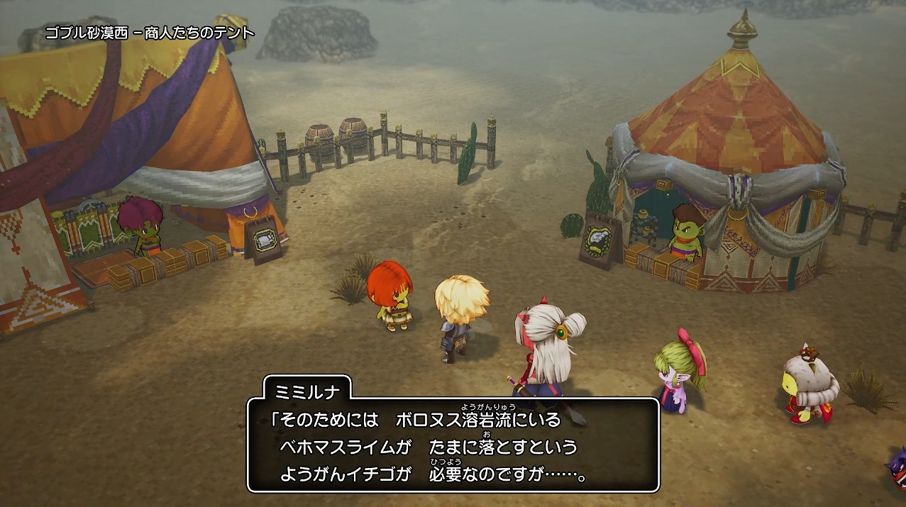 ゴブル砂漠西、商人たちのテントにて、ミミルナからようがんイチゴを求められました。