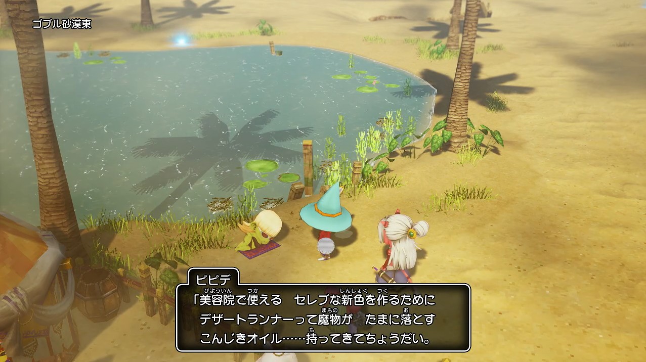 ゴブル海岸東にあるオアシスの隊商宿の外れにて、ビビデからこんじきオイルを求められました。