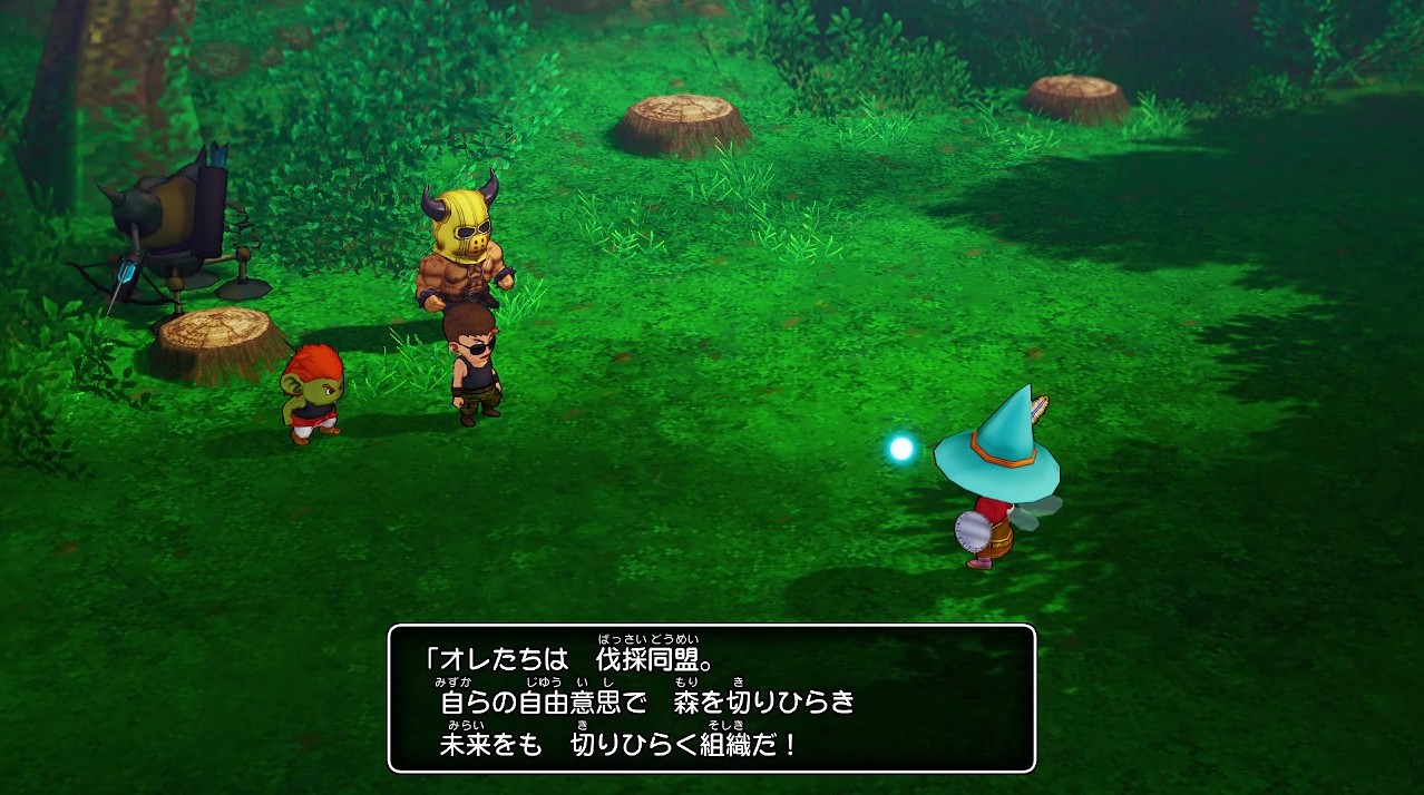 伐採同盟の人たちが向かったというモリナラ広場へ行ってみたところ、そこには最初に出てきた伐採同盟の3人と伐採マシン。