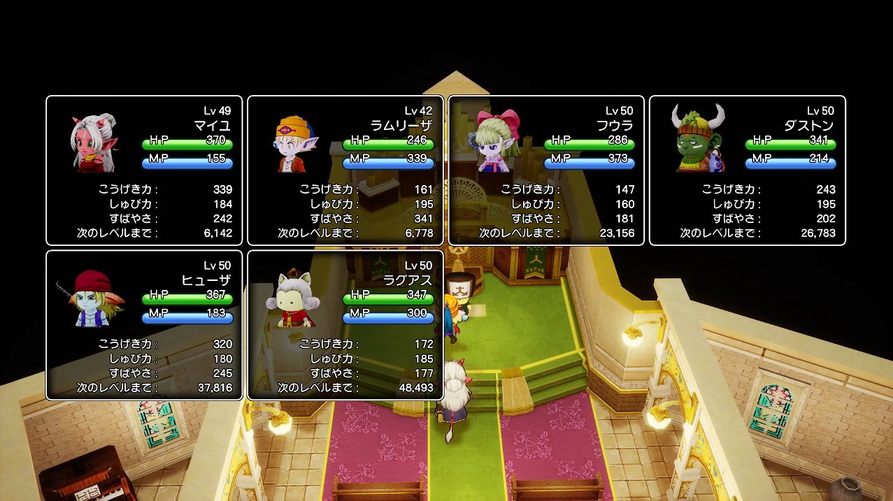 ステータスも、それぞれの職業で習得した全職でステータスアップみたいな効果がいろいろ乗り、レベル差があるのにパラメーターは高くなっています。