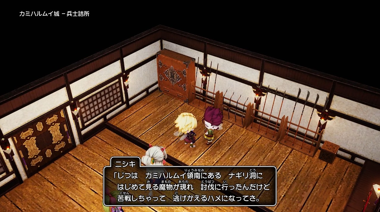 兵士ニシキの話では、カミハルムイ領南にあるナギリ洞に、初めて見る魔物が現れので討伐に行ったが、苦戦して逃げ帰ったということです。
