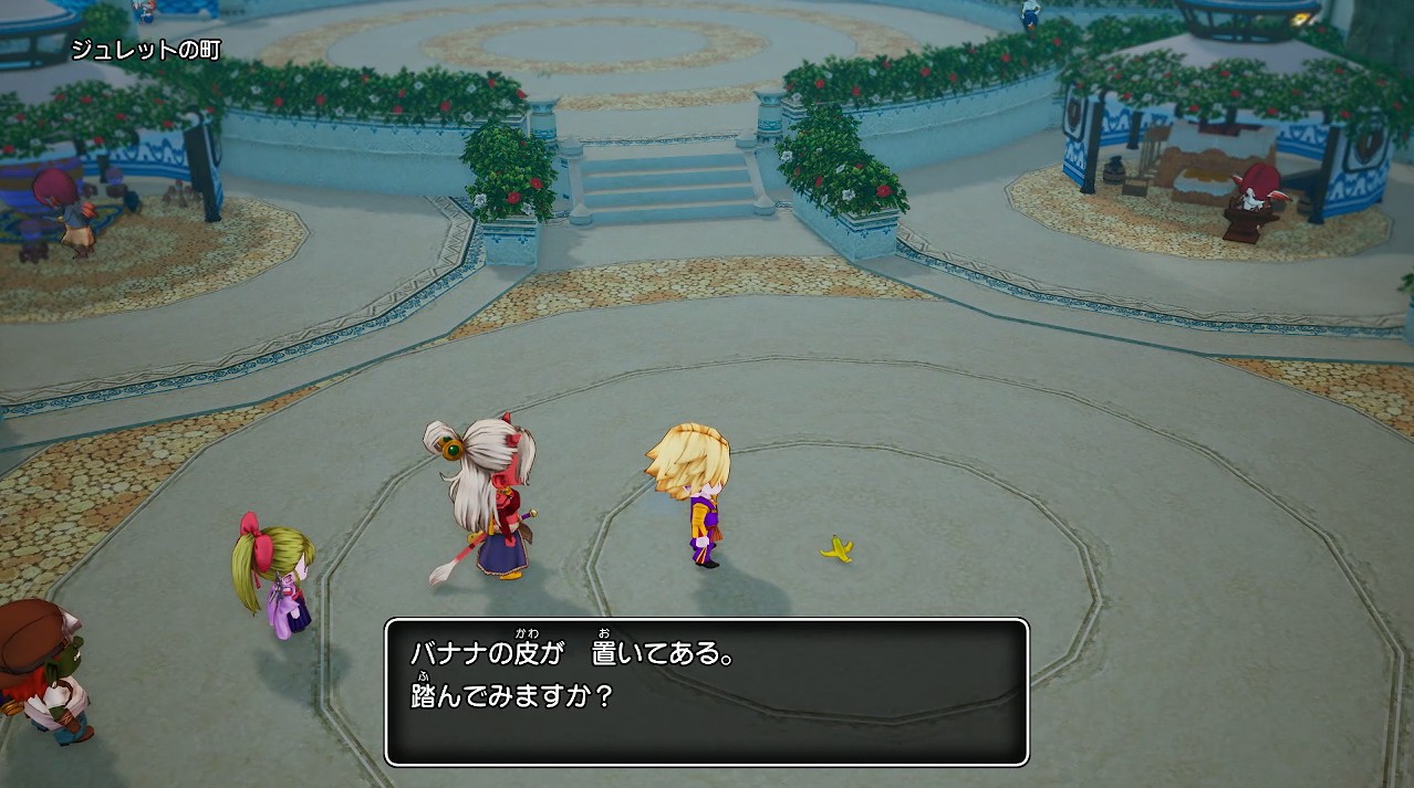 ジュレットの町に行ってみると、確かにバナナの皮が不自然に置かれています。