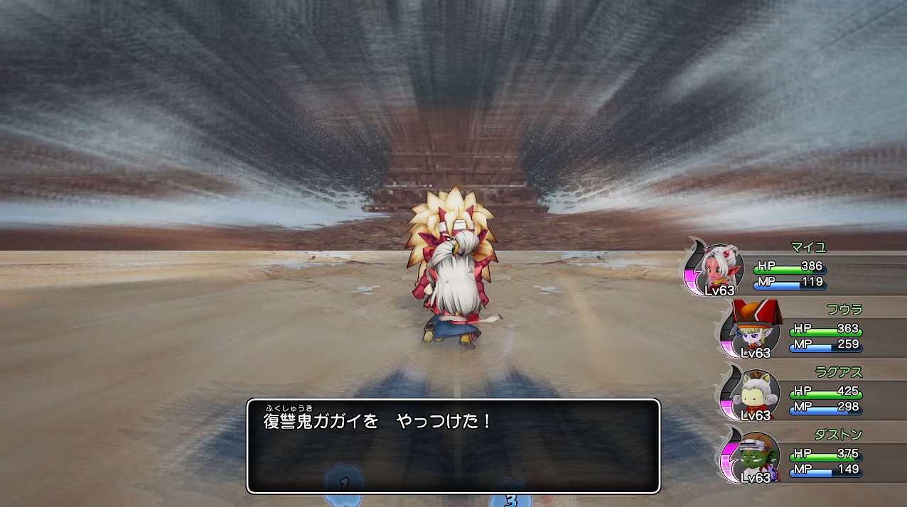 復讐鬼ガガイはスタンダードな武闘家タイプで、二回攻撃であるものの、直接攻撃とためる、爆裂拳しか使ってきませんでした。