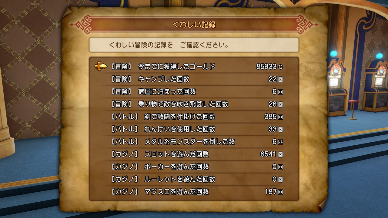 連打放置して増やしているので、スロットで遊んだ回数だけはやたらと多く、6541回も回しているようです。