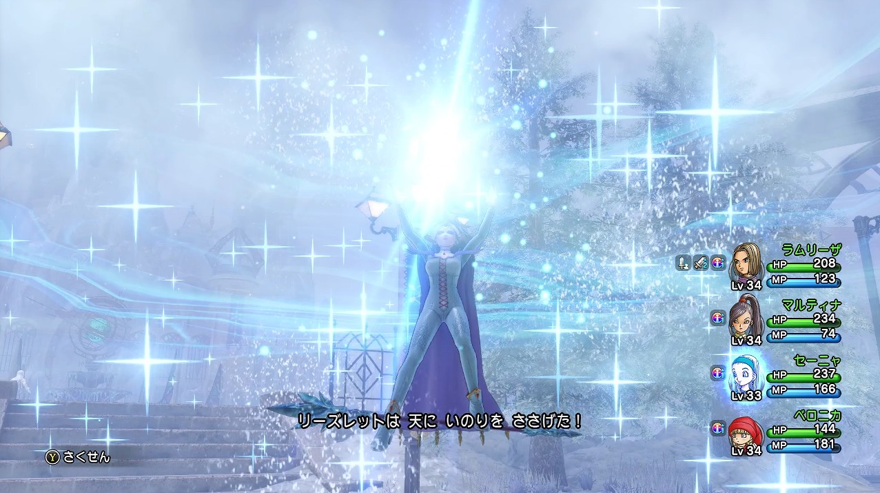 さらに天にいのりを捧げて吹雪を巻き起こし、物理攻撃が当たりにくくなるので、ベロニカの攻撃主体で攻めた方がよいみたいです。