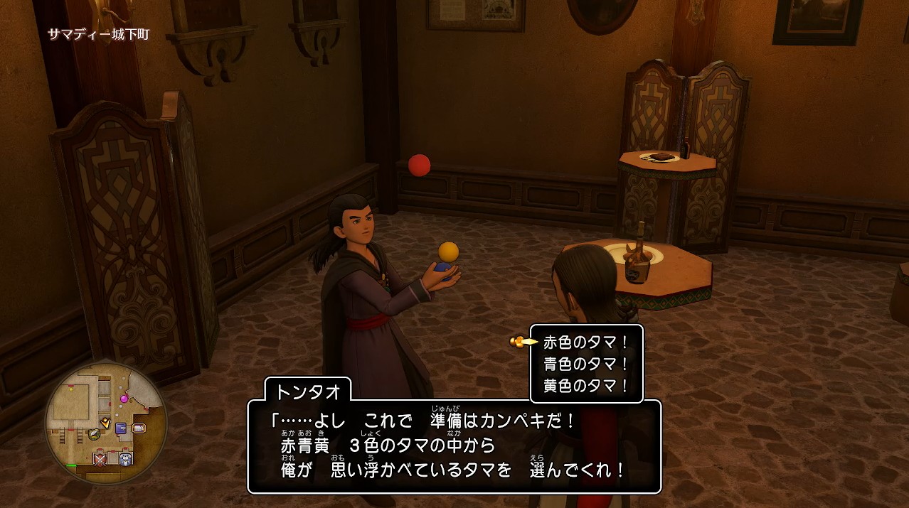 誘ってみると、3色の玉から思い浮かべている玉を選べと言われました。
