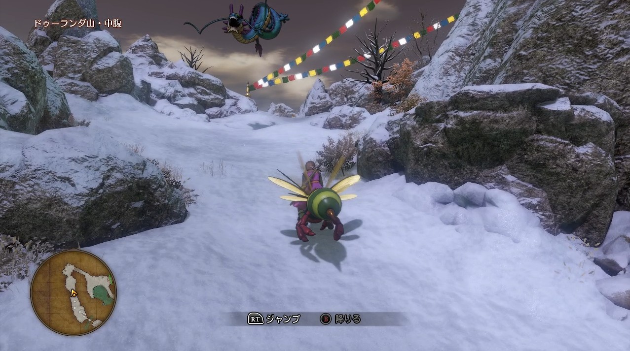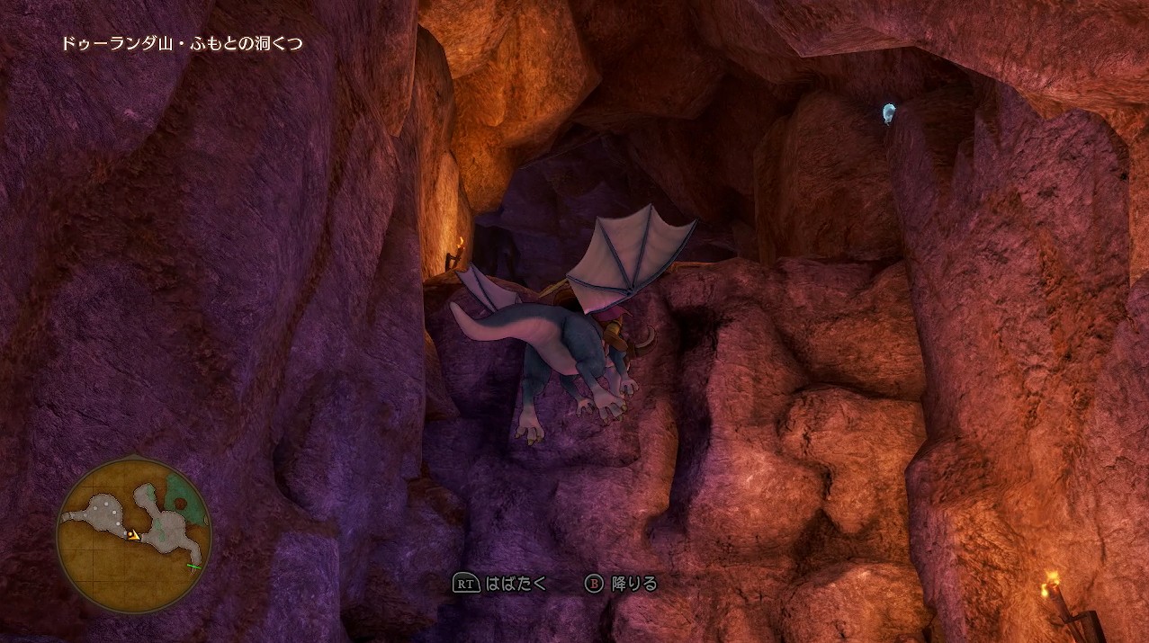 続いてふもとの洞窟では、ドラゴンライダーからドラゴンを奪って、それに乗って移動することになりました。