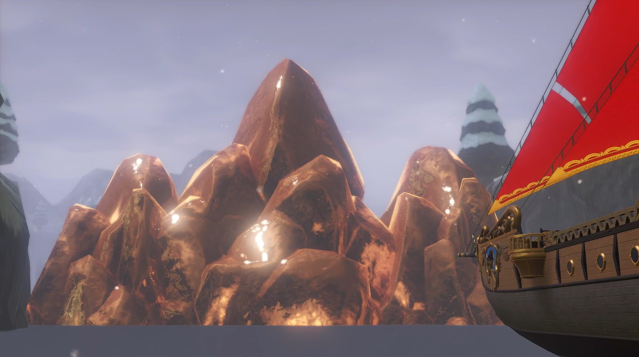 そしてクレイモラン王国に入るための入り江ですが、確かに黄金の氷山ができていて中に入れません。
