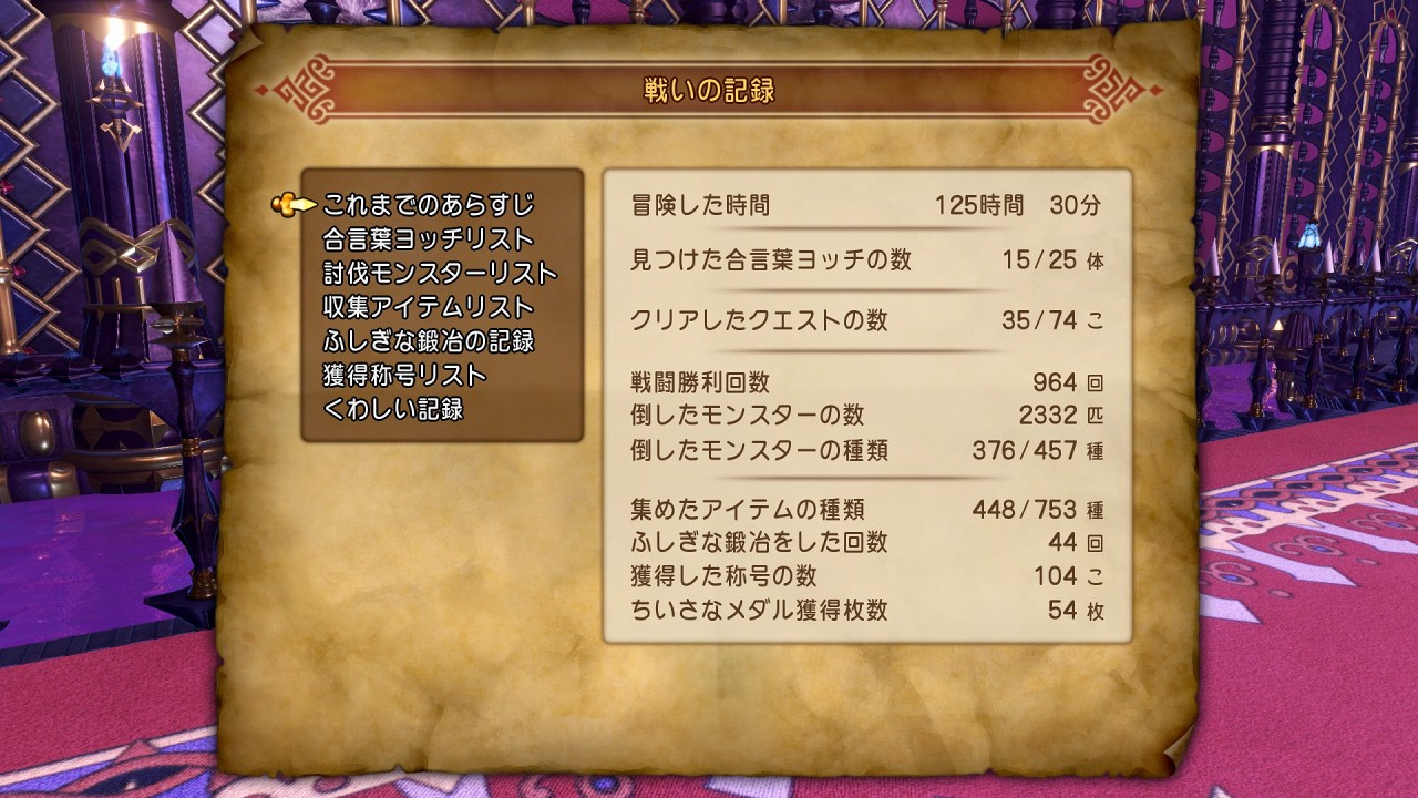 合言葉ヨッチはまだ10個も残っているし、クリアしたクエストも半分弱です。