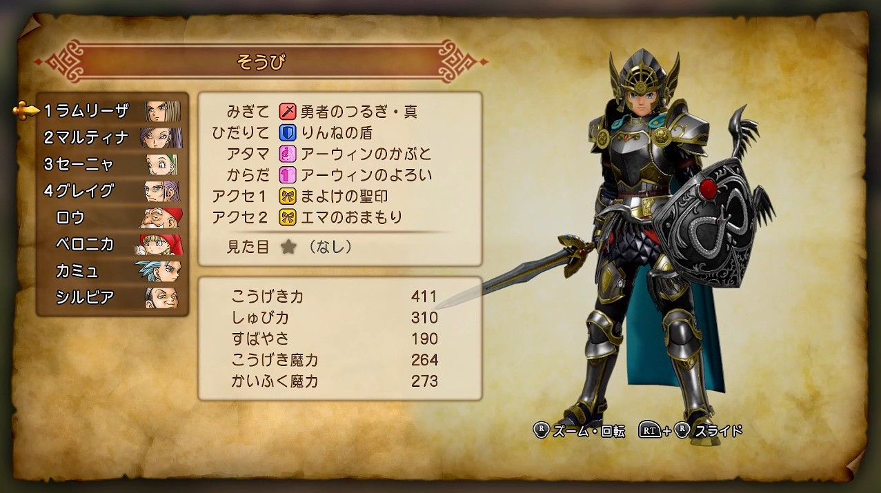 それほど強くないし、鎧姿でガチャガチャ移動するのは趣味じゃないので、トロデーン王国スタイル続行です。