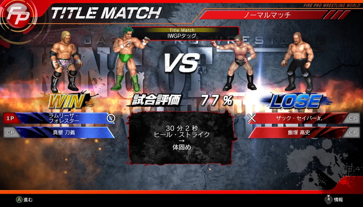 試合評価は77%、80%は欲しいところですが、やはりタッグマッチでは難しいです。
