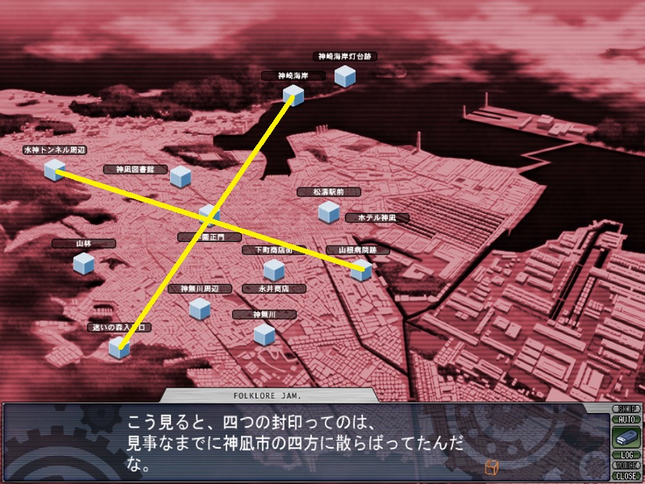 これまでの四つの封印は、神凪市の四方に散らばっていることがこうしてみると分かりやすいですね。