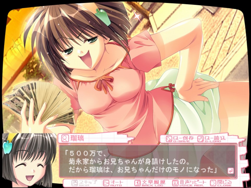夜、寝ている浩二の元へ瑠璃がやってきて、瑠璃は500万で買った浩二のもの、といった感じの話をします。