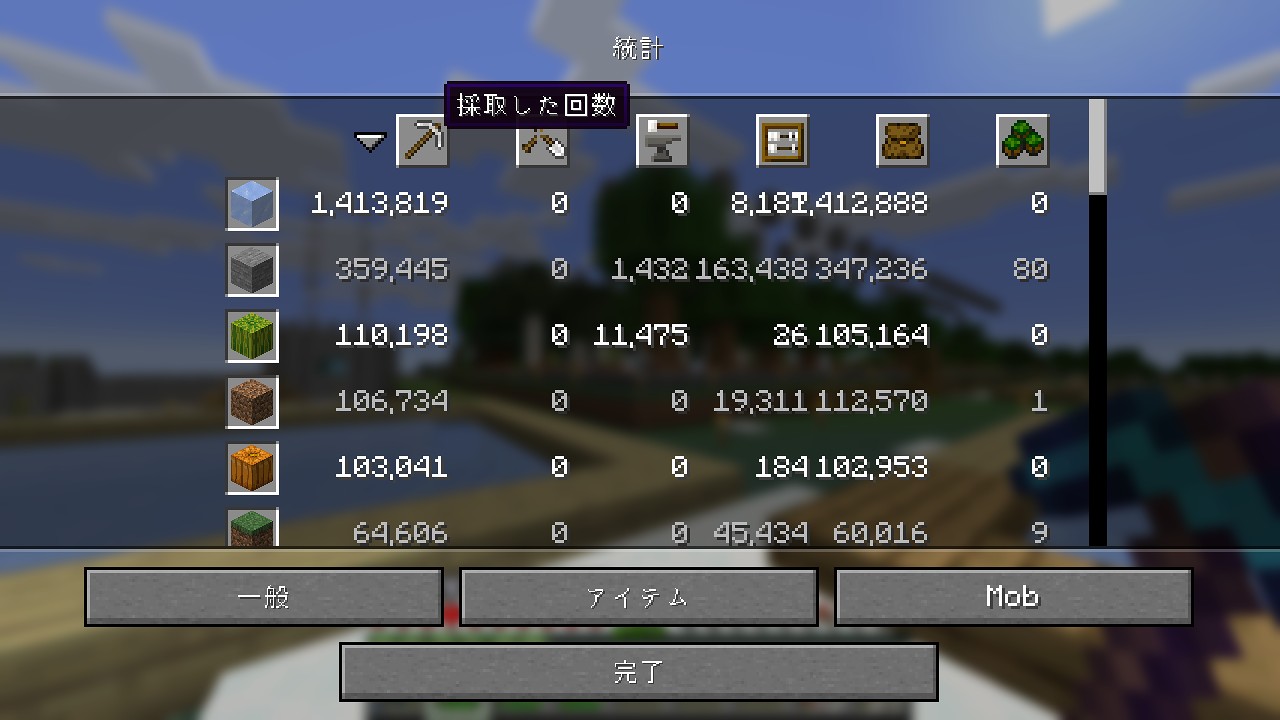 統計で見た青氷の作成数は、17364個になっています。