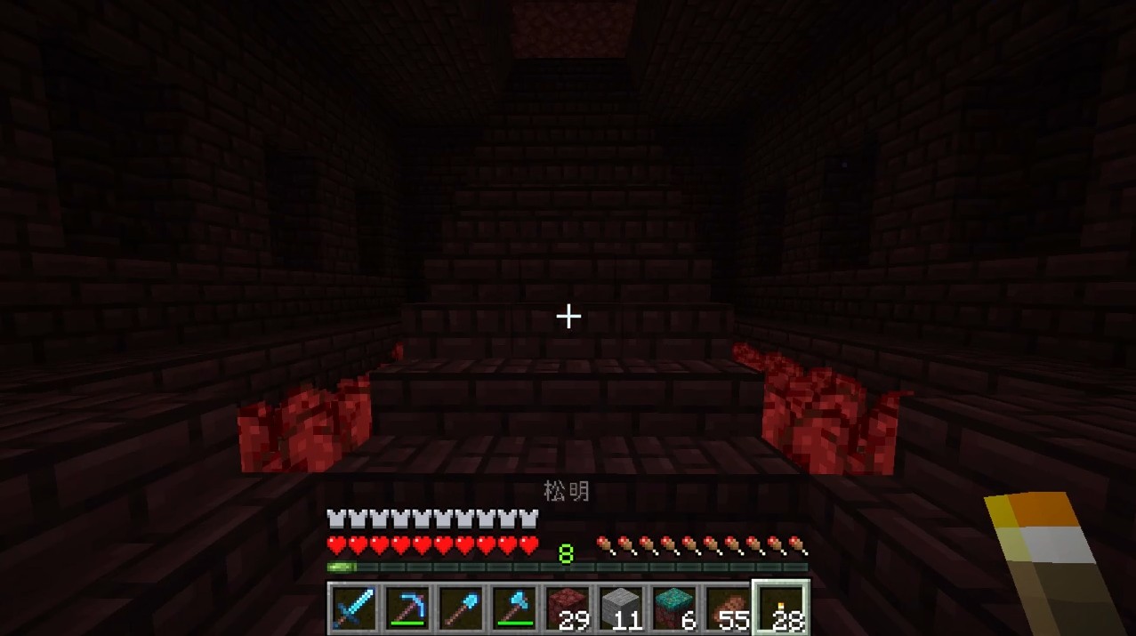 ネザーに行って、主にネザークォーツ、ソウルサンド、ネザーウォート、ブラックストーンを集めたいです。
