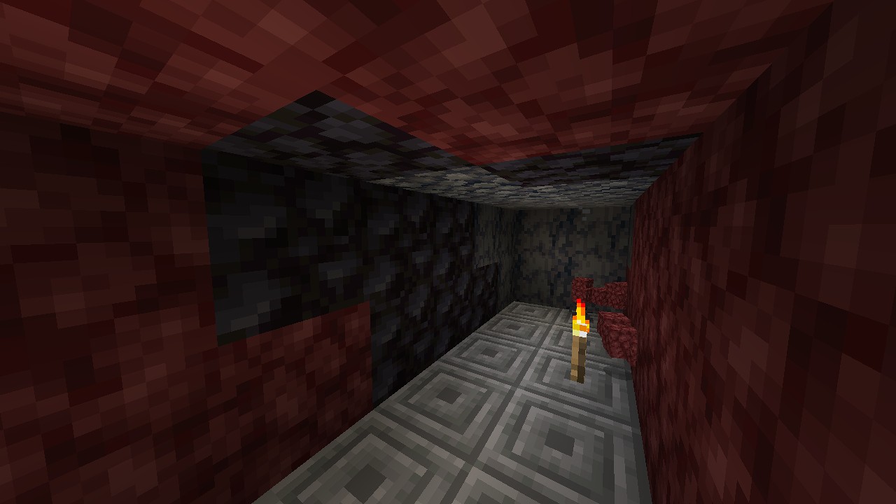 ネザーラックの壁があると、トンネルを掘って一直線に進みます。