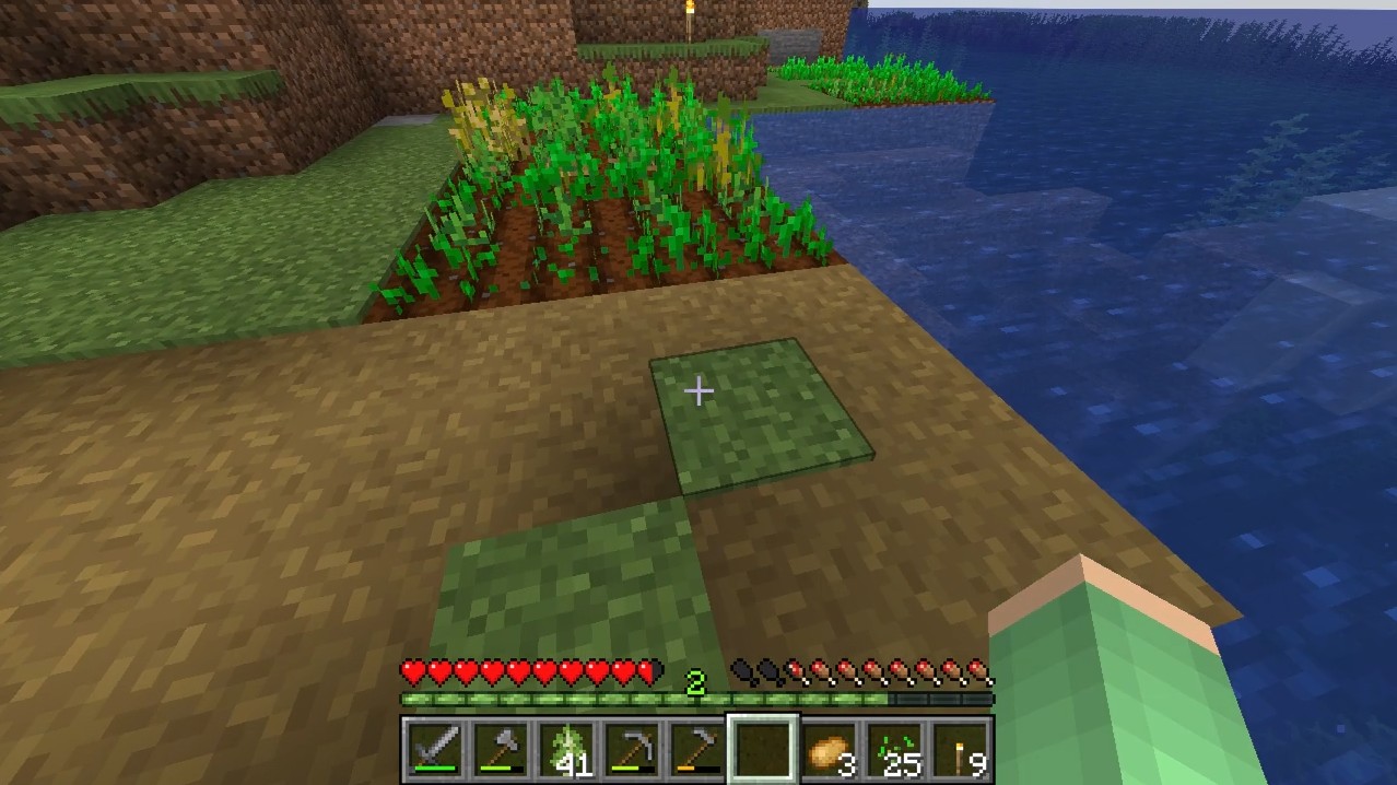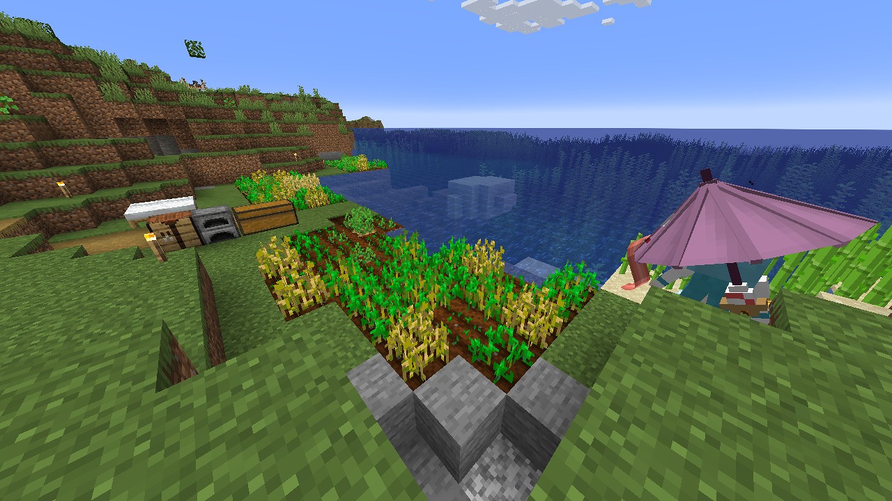 水辺近くを整地して、小麦とジャガイモを1列ずつ交互に植える方法で拡張します。
