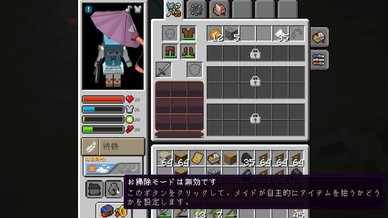 鉄ができた時点で盾を作り、小傘に装備させました。