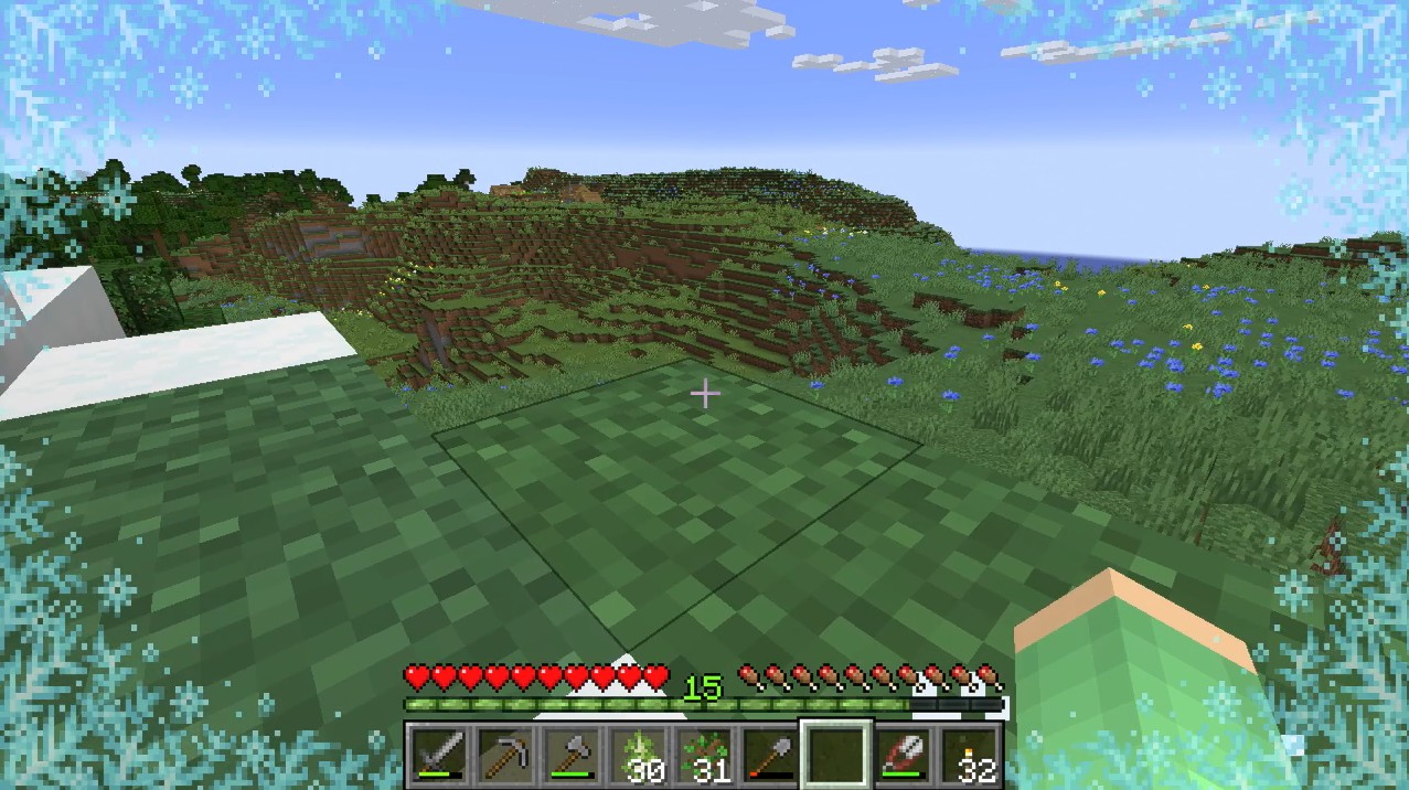 そしてある程度はげ山になったところで、数マスの水辺を作ってそれが凍るか試してみました。