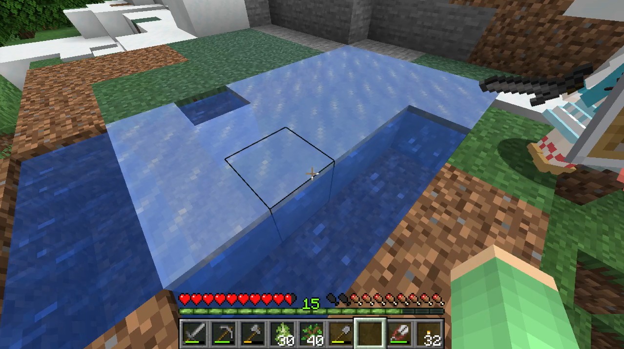 この凍らない部分にハーフブロックで蓋をして、水源にすればよいでしょう。
