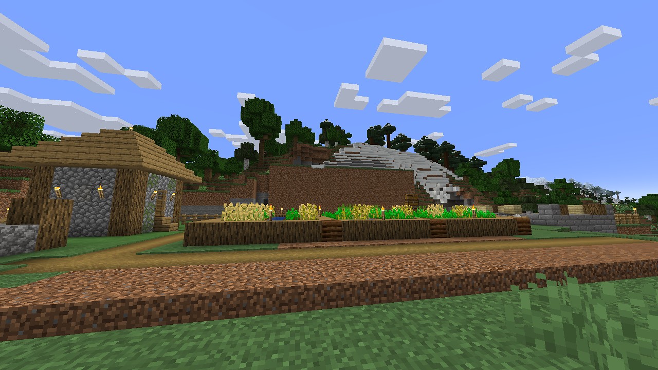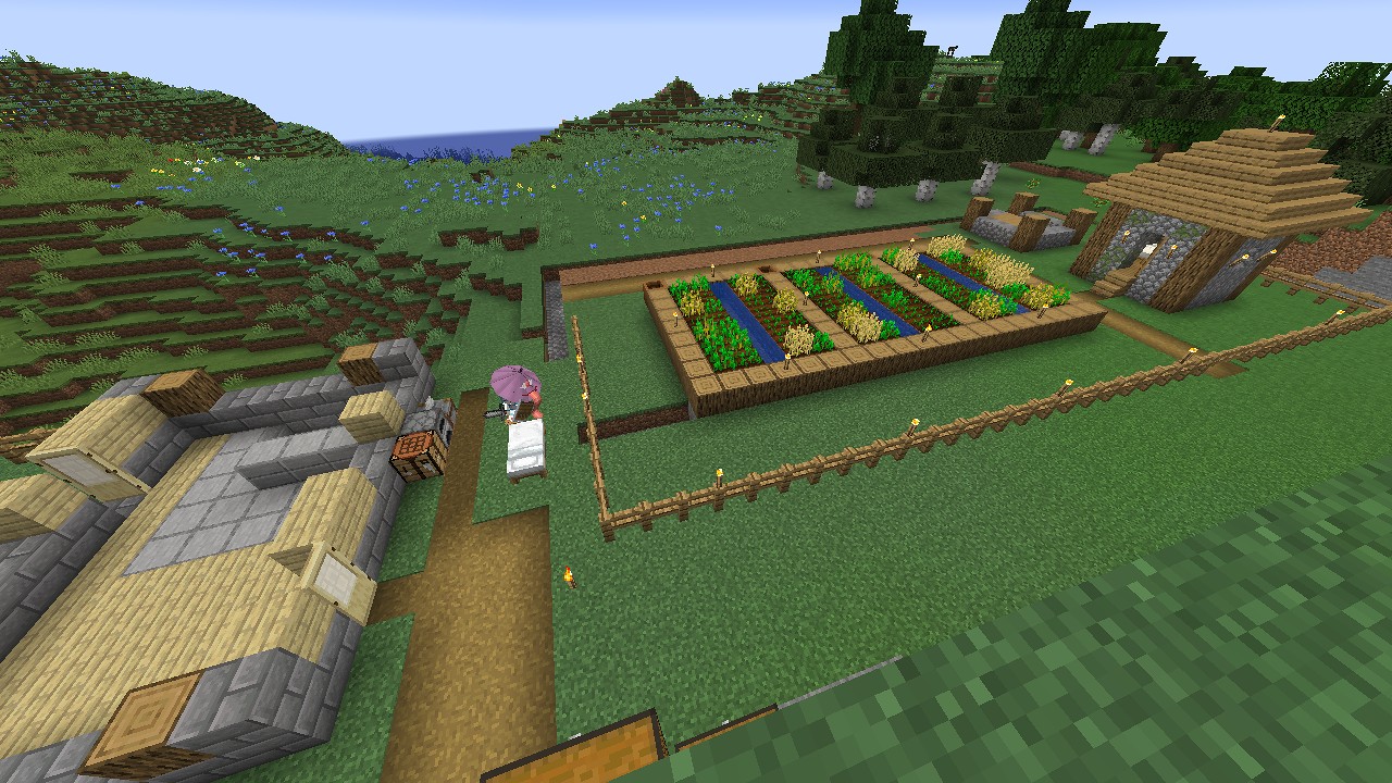村人の見た目は平地の方が好みなので、山を下りた先に作ることにします。