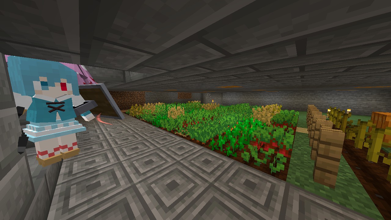 ジャックオーランタンで光源を確保しつつ、農民との取引用の農作物をここで育てます。