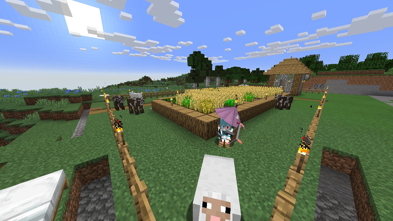 村の囲いが完成したので、周辺に居た羊と牛を連れてきました。