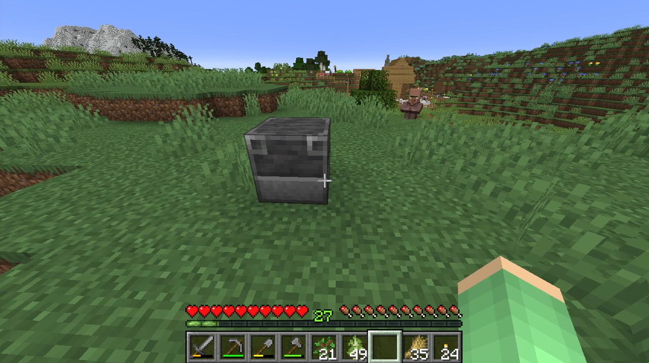 そして村から離れたところに設置すると、職に就こうとして職業ブロックまで移動します。