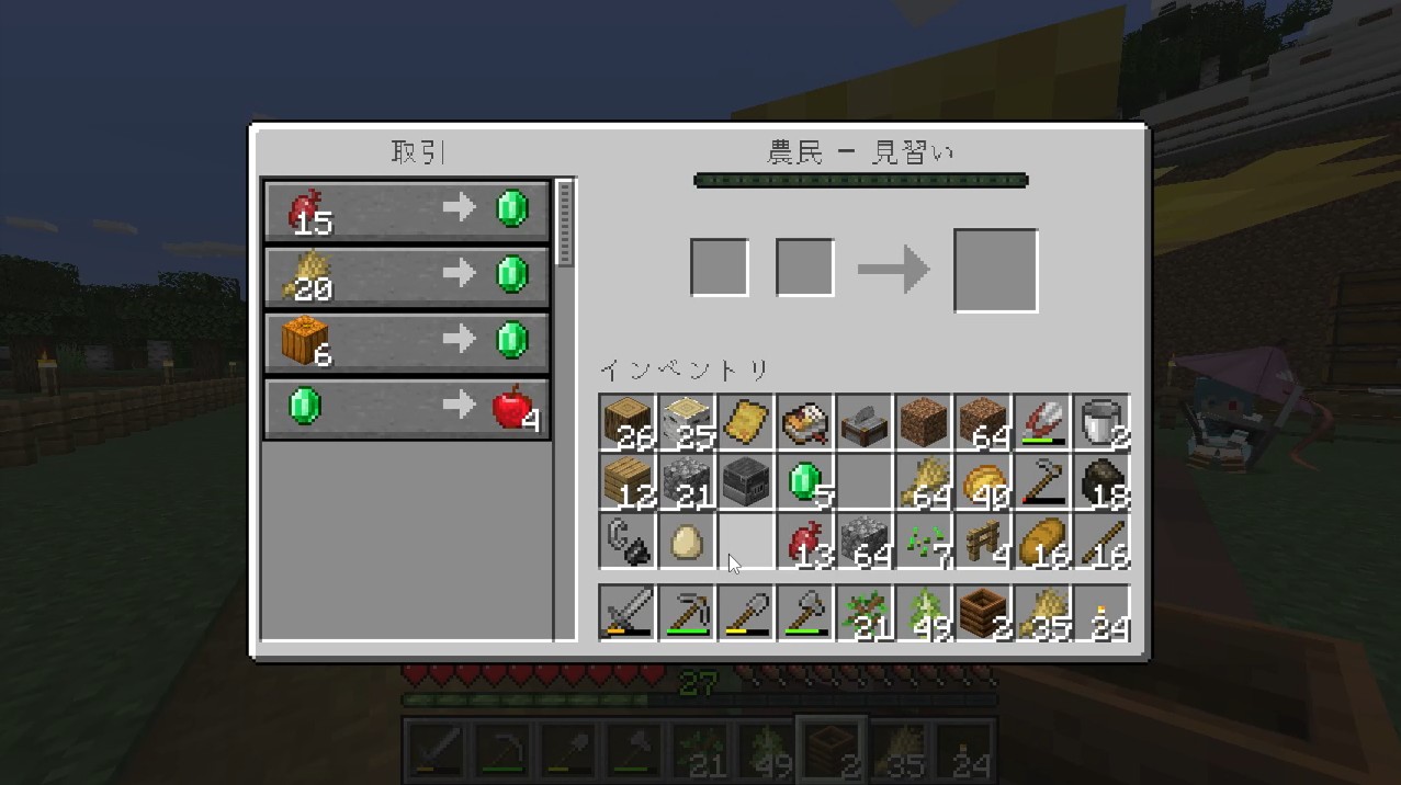 さらに見習いにランクアップした時に、Java版だとカボチャの取引ができない場合があります。
