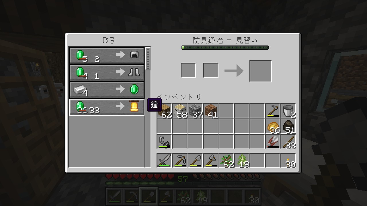 現在の見習いランクは、アイアンゴーレムトラップを作ってから、鉄インゴットを売って経験値を上げましょう。