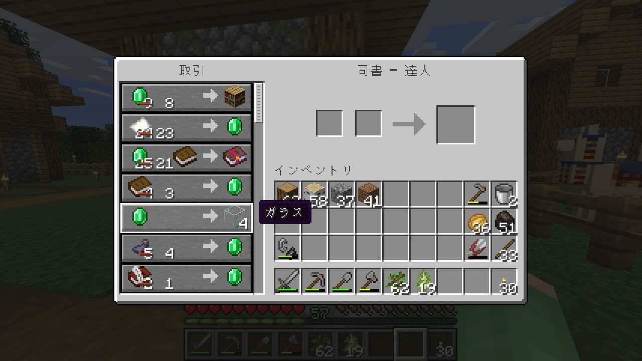 司書と取引のできる構造にしたいので、村人を完全に閉じ込める型では作りたくないのよね……
