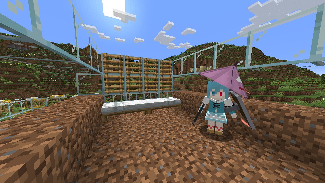 ここは土ブロックで土台を作り、最終的にはガラスで囲ってしまう予定です。