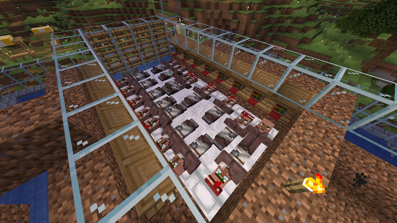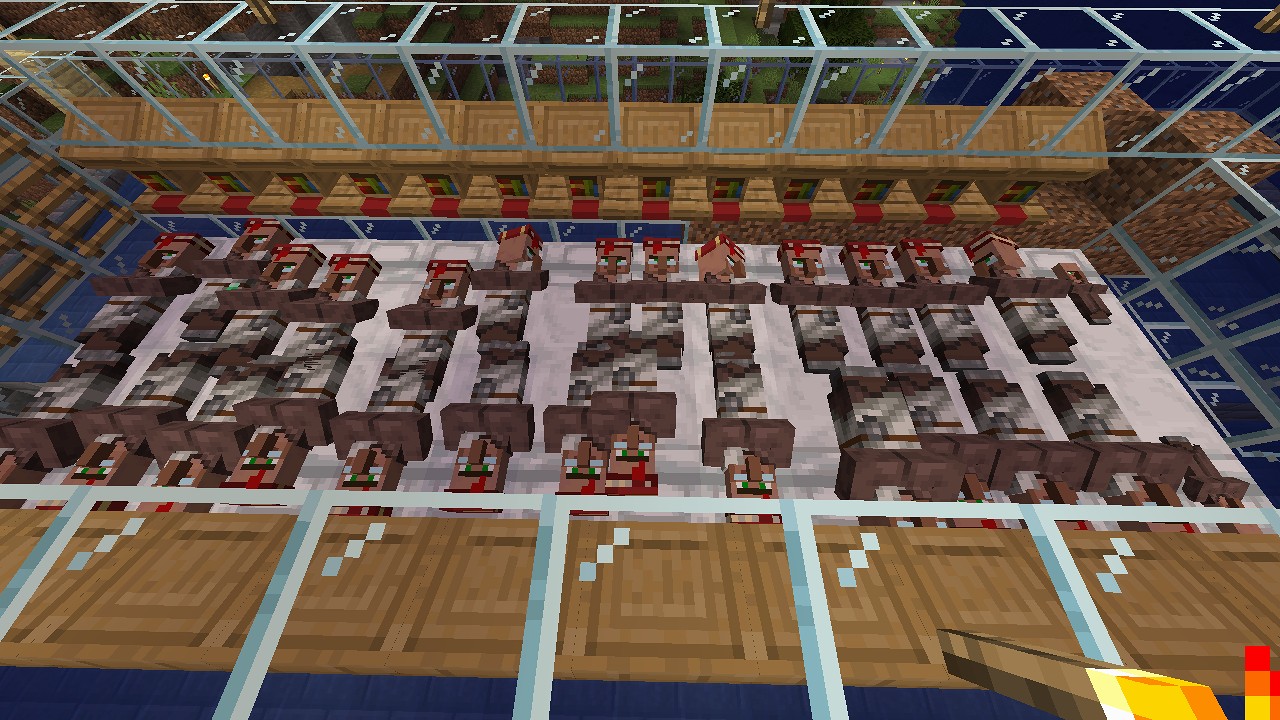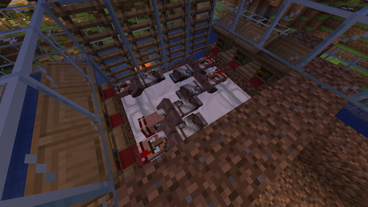 この日の作業として、スポーン地点のすぐ傍にあった村に住んでいた村人は5人居て、全て収納完了しました。