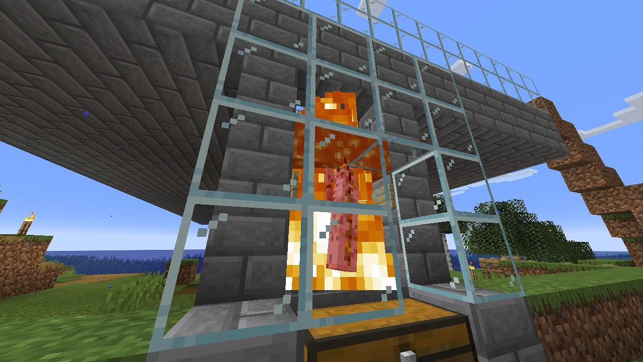 これで作業中にアイアンゴーレムが出現すると、処理層まで流されることになります。