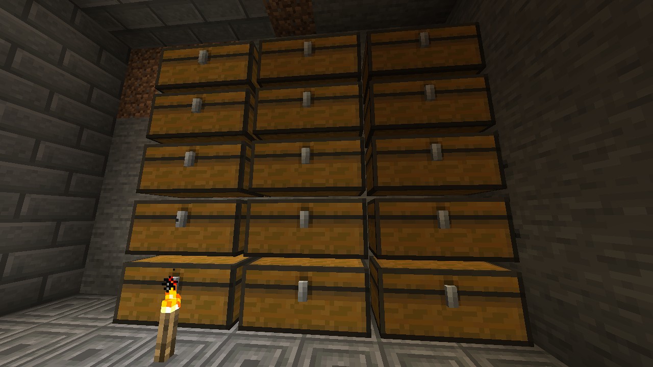 雪山を削った結果、チェスト15個分の石を入手しました。