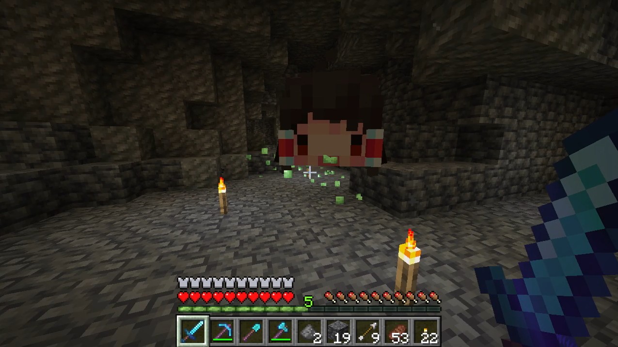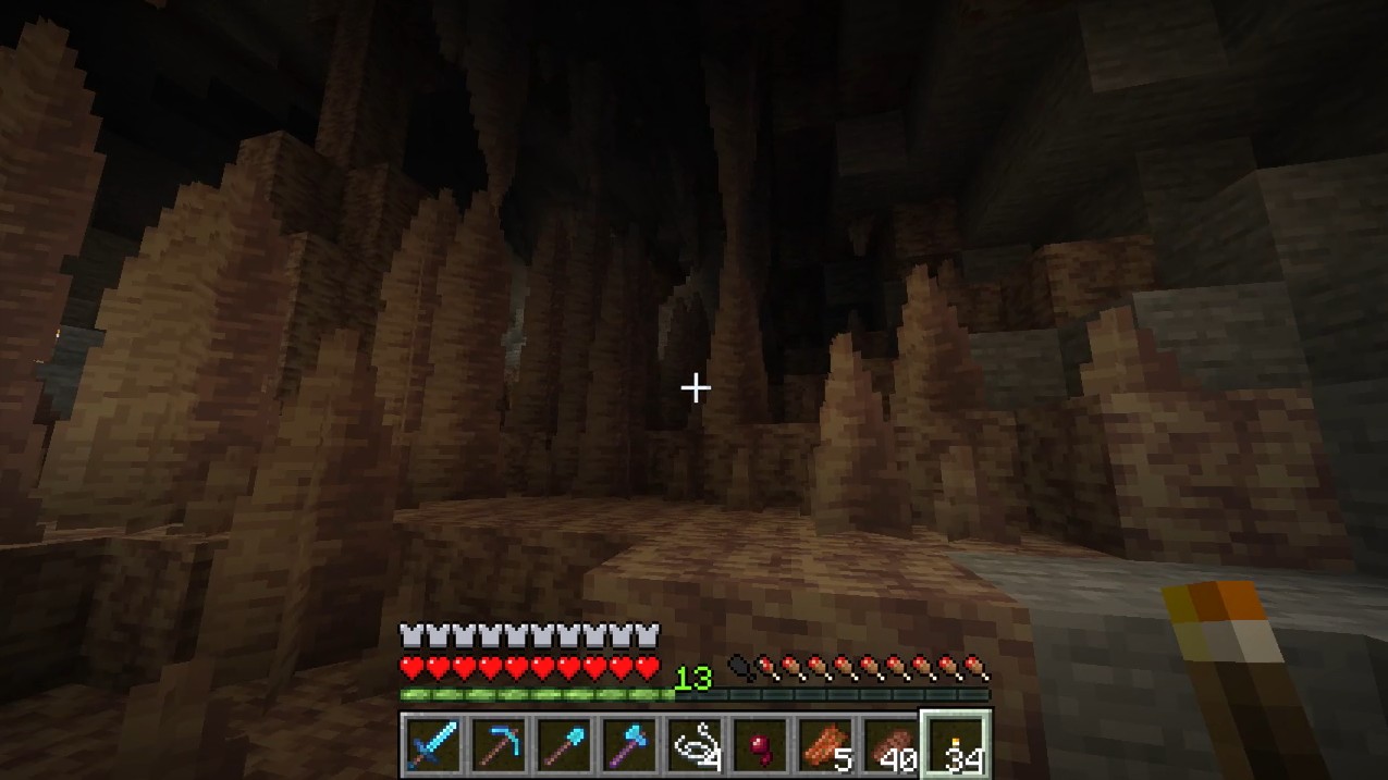 あとは、この日もダイヤモンドの在庫を増やしておこうと、昨日と同じ洞窟をさらに探索したのですが、謎の敵が現れました。